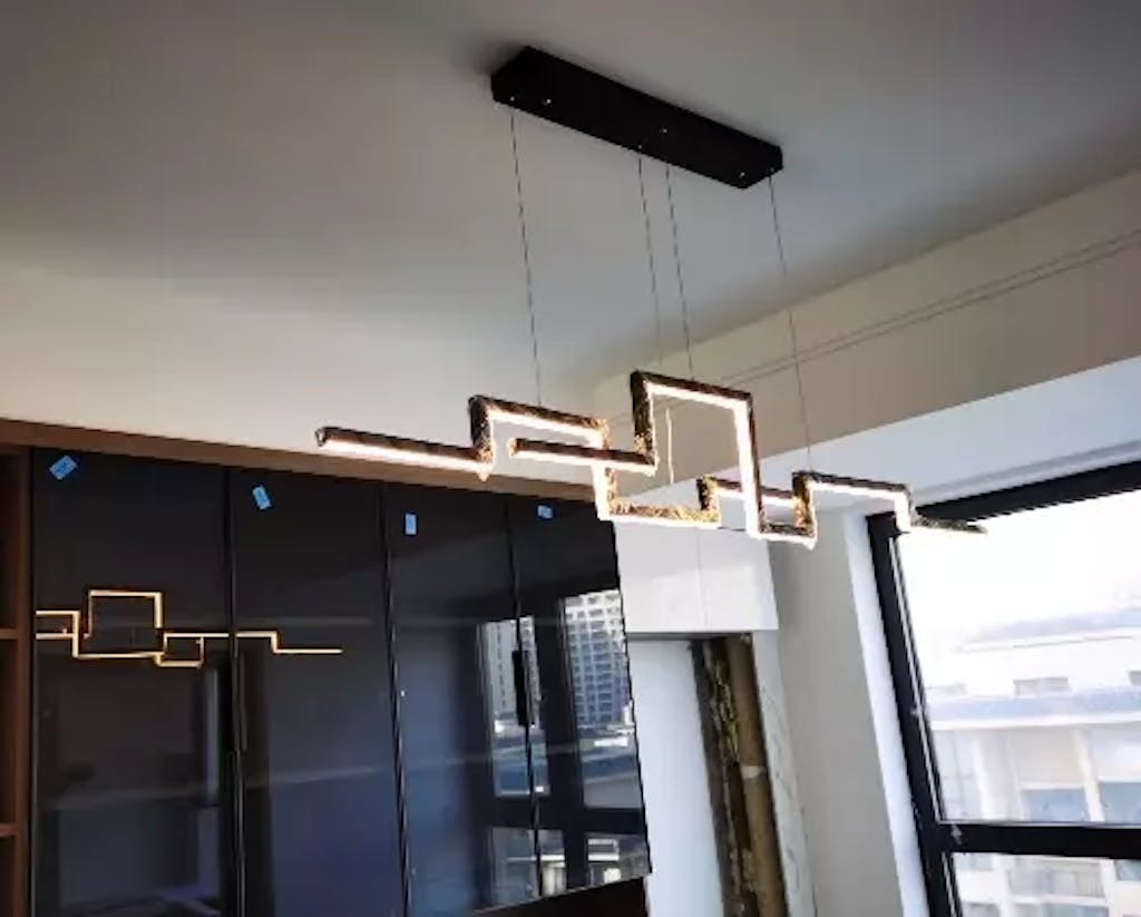 Ses barres LED aux formes géométriques réchaufferont l'atmosphère, et apportent une touche d'originalité à votre décoration. Placez-le dans votre espace de vie, salon, salle à manger ou encore cuisine. Il éclairera parfaitement la pièce de votre choix. Impossible de résister à la légèreté et au côté aérien de cette suspension ! Vous êtes à la recherche du luminaire qui apportera la touche d'élégance à votre espace, ce modèle est celui qu'il vous faut ! Il ne manquera pas d'attirer tous les regards de vos convives lors de vos repas entre amis ou en famille ! Ce lustre à décidément tout pour plaire !