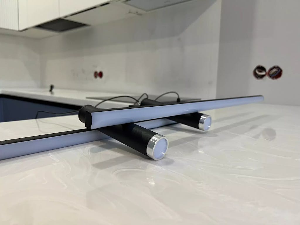 Idéal au-dessus d'un îlot de cuisine ou au-dessus d'une table de salle à manger ce lustre épuré apportera à votre intérieur modernité et élégance. Fin et léger, ce luminaire éclairera votre espace d'une lumière chaleureuse et éclatante avec ses barres LEDS intégrées. Cette suspension dispose aussi de deux points lumineux afin d'intensifier l'éclairage. Vous avez la possibilité de choisir la couleur de la lumière: blanc froid pour une cuisine ou blanc chaud pour un salon ou une salle à manger !